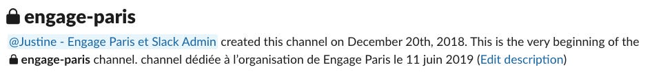2018, après un meet-up et quelques bières, le channel privé “Engage Paris” est lancé.